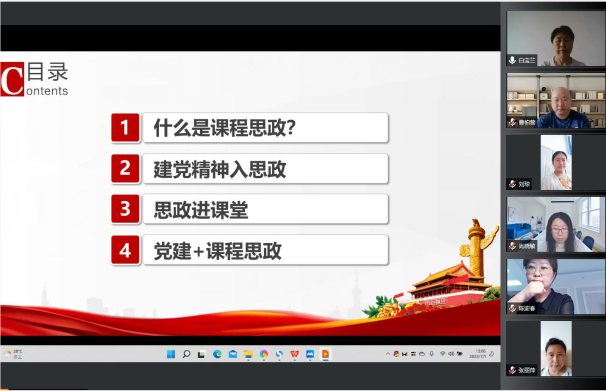 本次活动共分为“什么是课程思政?”、“建党精神入思政”、“思政进课堂”、“党建+课程思政”四个议题。活动中,大家围绕《高等学校课程思政建设指导纲要》、中国共产党伟大建党精神与精神谱系开展学习,并探讨有效将建党精神融入课程思政、融入课堂教学的方向与路径。