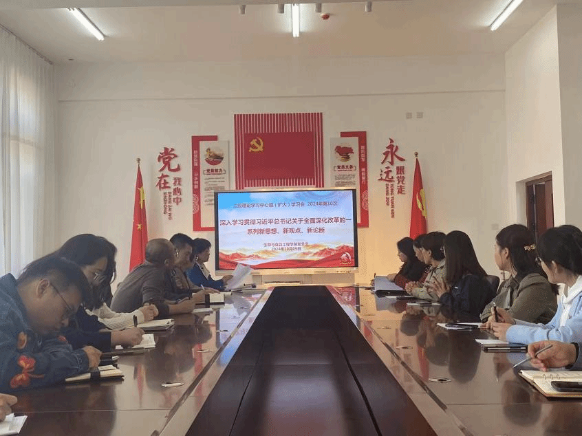 2024年10月9日,学院二级理论学习中心组集中开展深入学习贯彻习近平总书记关于全面深化改革的一系列新思想、新观点、新论断的会议。党总支书记陈迎春主持会议。