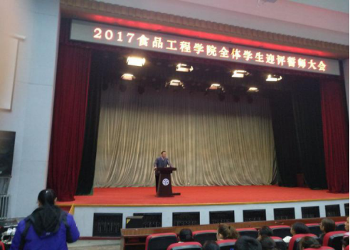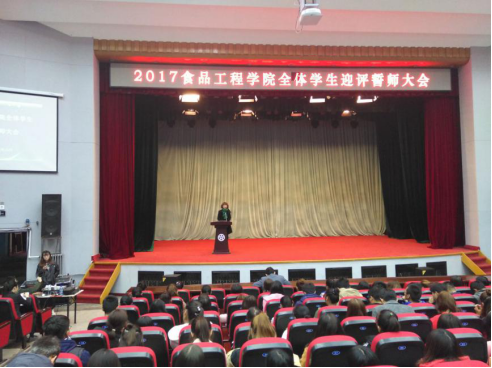 为营造精神振奋,诚挚热情、文明礼貌,团结向上的迎评氛围,促进我校在审核评估中取得优异成绩。10月25日下午1时,我院在学校报告厅召开“食品工程学院迎评誓师大会”。出席此次会议人员:食品工程学院党总支书记王伟东、党总支副书记董娅、分团委书记王戈及全体在校大学生。大会由董娅主持。