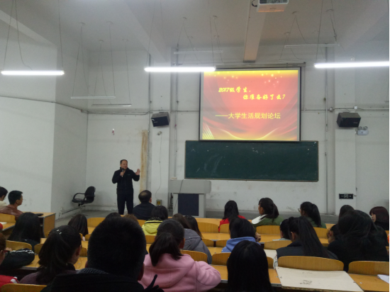 为了指导和帮助新生了解自己、熟悉专业,适应新环境,尽早地树立学习目标,掌握科学合理的学习方式,我院于10月11日15:30时,在本校三教315举办了食品工程学院2017级学生“大学生活规划论坛”。食品工程学院李皓院长,陈长武教授、朱可彤老师、刘刚老师,分团委书记王戈老师及2017级全体学生。大会由李皓院长主持。