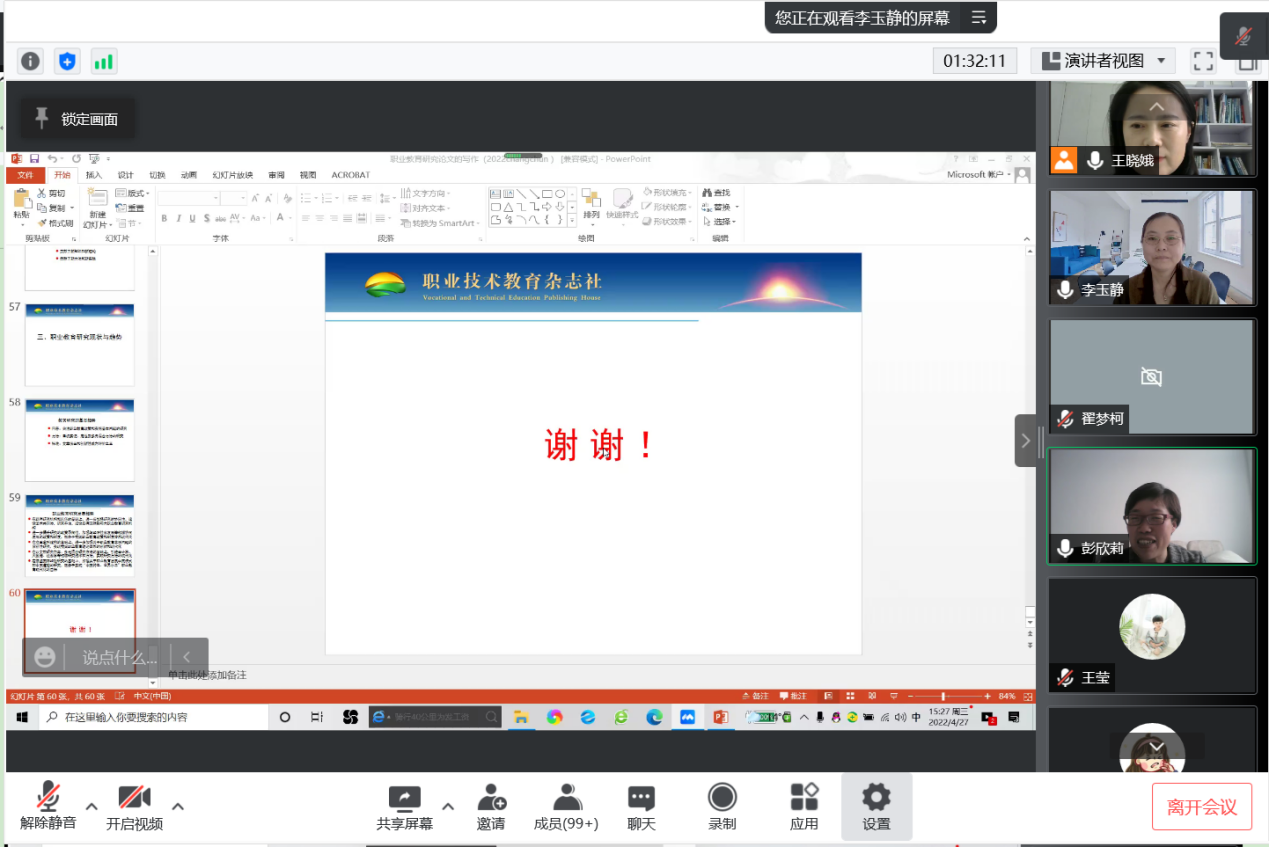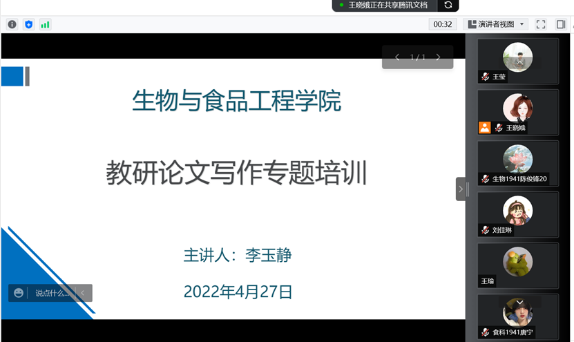 为进一步提升本院教师及师范生教研能力及教研论文写作水平,以实际行动推进食品营养与检验教育专业及食品科学与工程专业师范认证工作,2022年4月27日,yl9193永利集团召开线上教研论文写作专题培训,特邀我校职业技术教育杂志社李玉静副主编进行报告。会议由王晓娥副院长主持,彭欣莉副院长(主持工作)、曹柏营副院长、学院教师代表及2018级与2019级全体师范生共计192人参与此次会议。