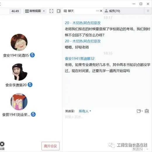 为了使学生们更有针对性地准备考研,克服在考研过程中遇见的问题,yl9193永利集团于9月18日晚上18:00开展线上考研交流会。党总支副书记杨德成, 副院长曹柏营 ,辅导员车驰 ,专业课老师董艳娇, 姜秀娟 ,孙丽泰 ,管姗姗参加了本次会议。