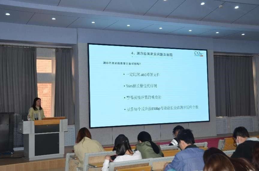 吉林省库美生物科技有限公司及长春市中科库美医学检验有限责任公司总经理李德兰主要介绍了分子生物学共性测试平台、中科库美检验平台及该行业对人才需求,使学生了解企业的人才需求标准、能力和素养要求。