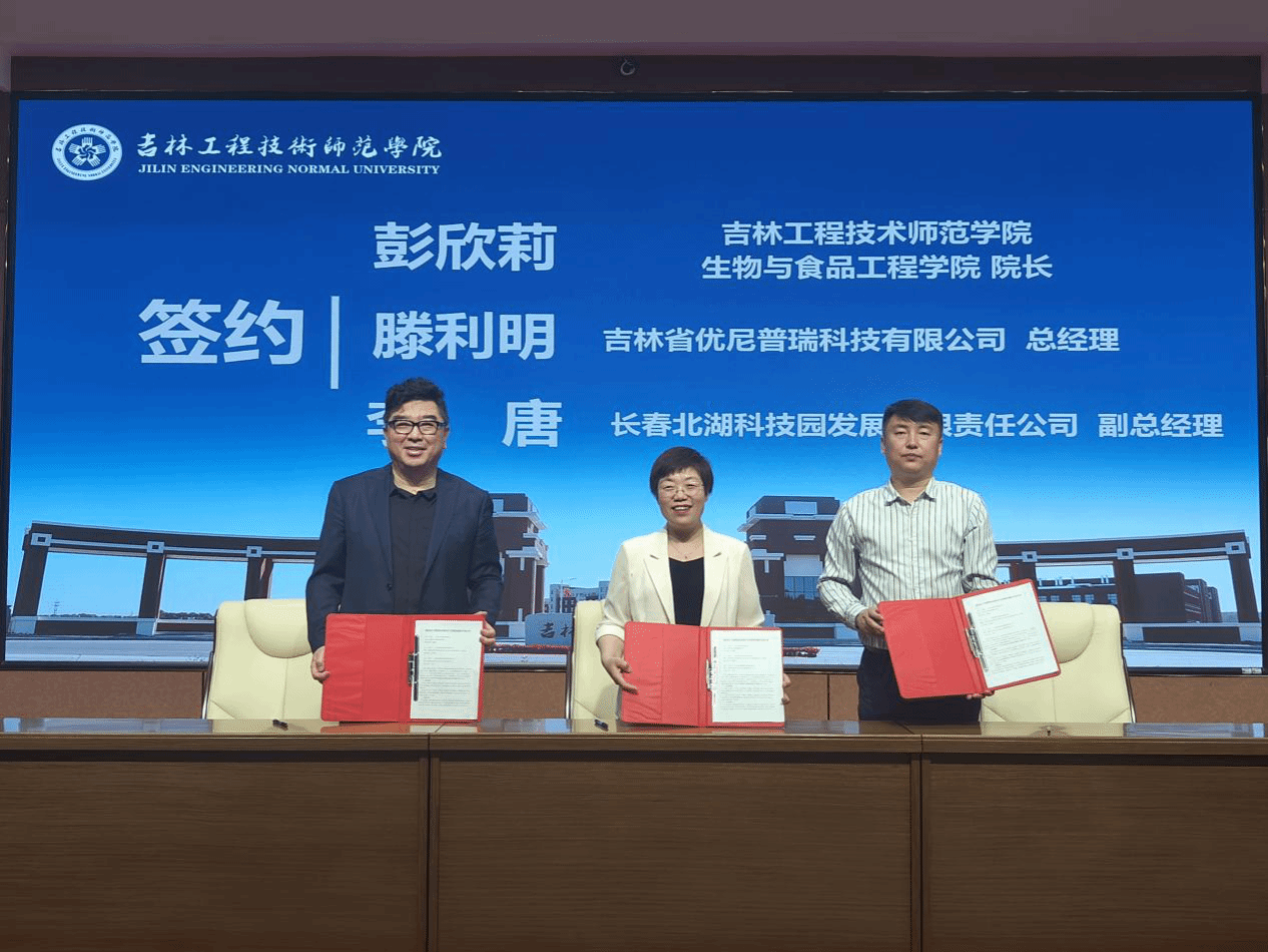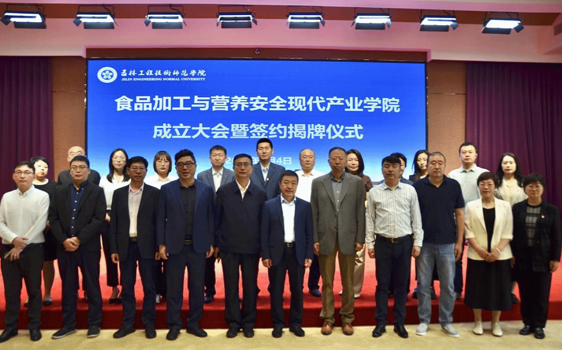 会上,学校与吉林省优尼普瑞科技有限公司、长春北湖科技园发展有限责任公司产业学院共同举行产业学院成立暨签约揭牌仪式,食品加工与营养安全现代产业学院旨在深入推进“政-行-企-校”深度融合与协同创新,促进食品、生物及化工领域产业技术升级,培养符合未来行业需求的应用型人才。