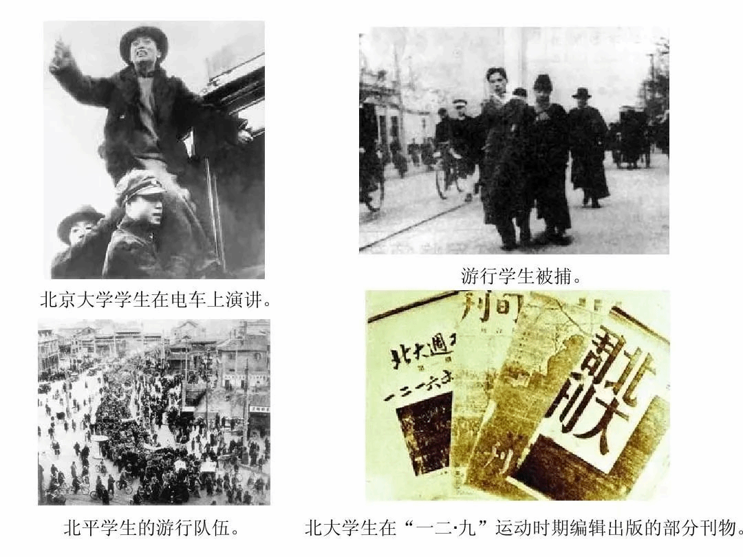 “九一八”事变之后,日本帝国主义加紧侵略中国。他们在东北地区推行殖民地化统治的同时,利用南京国民政府的不抵抗主义,把侵略魔爪一步步伸向华北,民族危机日益严重。1935年五六月间,日本侵略者密谋策划,在天津和河北等地制造事端,并以武力相威胁,先后迫使南京国民政府接受达成了“何梅协定”和“秦士协定",把包括平津在内的河北、察哈尔两省的大部分主权奉送给日本。之后,日本帝国主义积极策动所谓华北五省“防共自治运动”,策划成立由其直接控制的傀儡政权,全面在华北进行政治、经济、文化侵略,“华北之大,已经安放不下一张平静的书桌了”,激起北平各阶层人民的极大愤慨。
