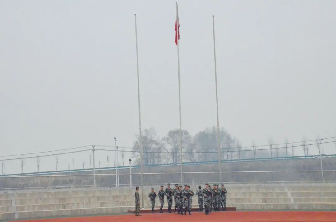 英姿飒爽的国旗护卫队成员们早早的集合完毕,个个身着戎装自信挺拔蓄势待发。随着指挥员一声“齐步走”令下,队员们迈着整齐铿锵的步伐,以饱满的热情,挥着强劲有力的手臂,庄严地护卫五星红旗进场。伴随着雄壮的国歌,五星红旗冉冉升起。