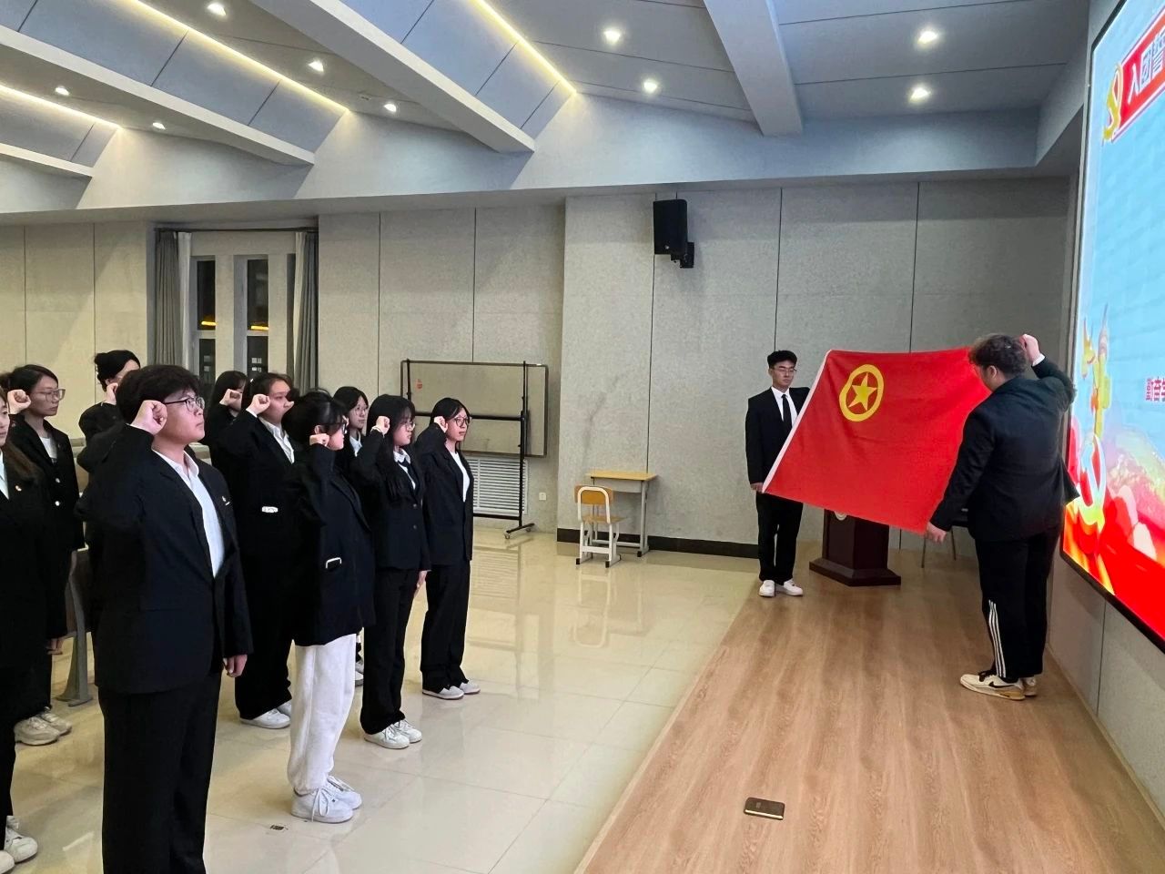 为深入学习贯彻习近平新时代中国特色社会主义思想,引导广大团员深刻领悟“两个确立”的决定性意义,坚决做到“两个维护”,纵深推进基层团建,引领广大青年学子肩负青年使命。5月27日,我院组织开展“以‘誓’共忆”重温入团誓词活动。通过这次活动,我院学子表示时刻把爱党爱国和奋斗奉献紧密结合起来,奋发图强、拼搏进取,不负韶华、不负时代,奋力书写为中国式现代化挺膺担当的青春篇章。