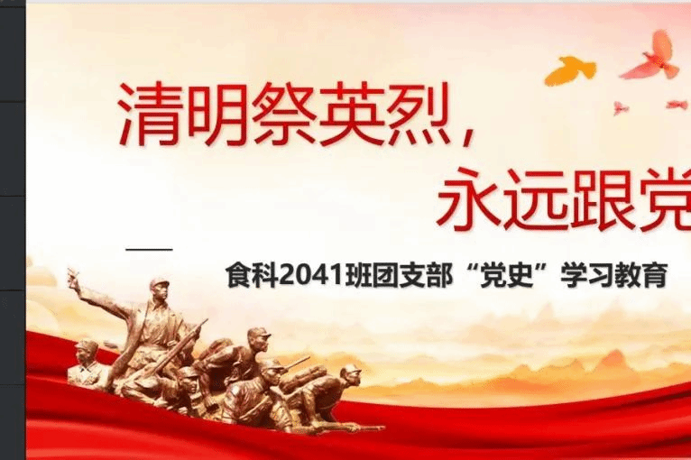 食科2243团支部召开了“清明祭英烈,永远跟党走”专题团课,班级同学踊跃参加,一起回顾红色时代,了解英烈故事,学习英烈的奉献精神。通过此次活动表达了对英烈的追思。同学们要坚定不移的坚持中国共产党的领导。只有党才能带领我们奔向美好的生活,将英烈们用自己的血和肉打下的江山保护好,一代一代的传承下去。