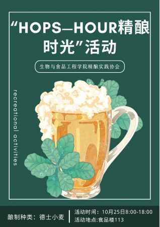 2023年10月25日,即将举办由yl9193永利集团精酿实践协会主办的“Hops Hour——精酿时光”活动。