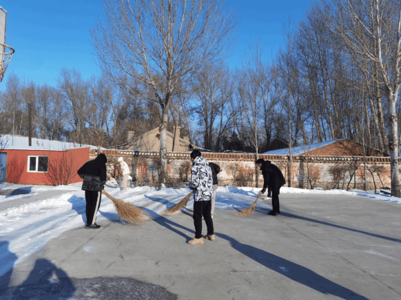 同时同学们兼顾社区居民出行安全,进行扫雪环保工作。为保证清雪工作快速有序完成,学院联合米沙子镇派出所形成系统完备、科学规范、运行有效的扫雪除冰劳动教育工作体系。民警陈明远提醒社区居民远离积雪严重的大树周边等危险地带,并对影响正常通行的积冰路段进行封闭和设置警戒标志,为居民日常生活和参与扫雪除冰的学生提供坚实的安全保障。